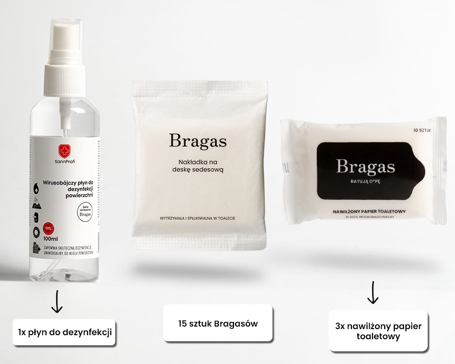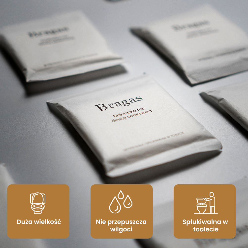 Bragasy stworzyliśmy, aby umożliwić każdemu bezpieczne i wygodne korzystanie z publicznych toalet. Wyróżniają się wyjątkowym materiałem, który jest bardzo wytrzymały, a jednocześnie całkowicie rozpuszcza się w wodzie.
